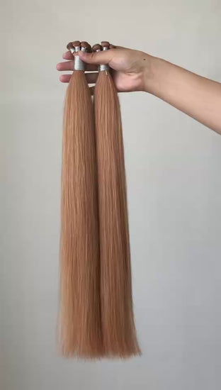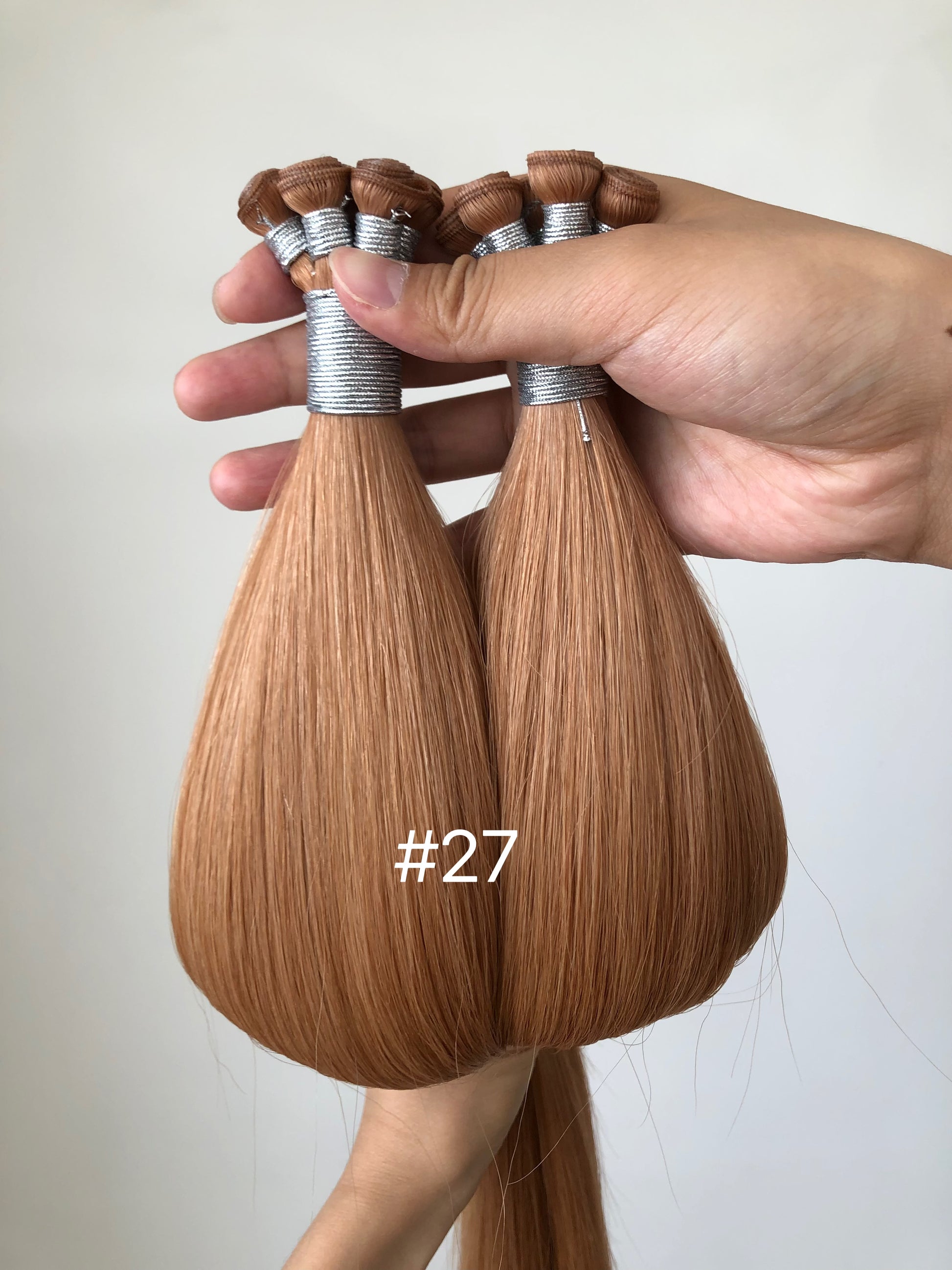22inch 100g/5 wefts #27 Caramel Blonde Honey Light Golden Brown Genius Wefts In Stocks Double Drawn Hair Extensions Russian Hair